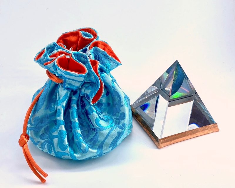 NOUVEAU: La Pyramide Optique est désormais vendue avec sa luxueuse pochette de brocart, et un chiffon nettoyant et protecteur. De plus elle a désormais un double sertissage de cuivre à sa base. En effet, comme c'est l'Artefact a emporter partout avec soi, il a donc besoin d'être protégé durant son transport.